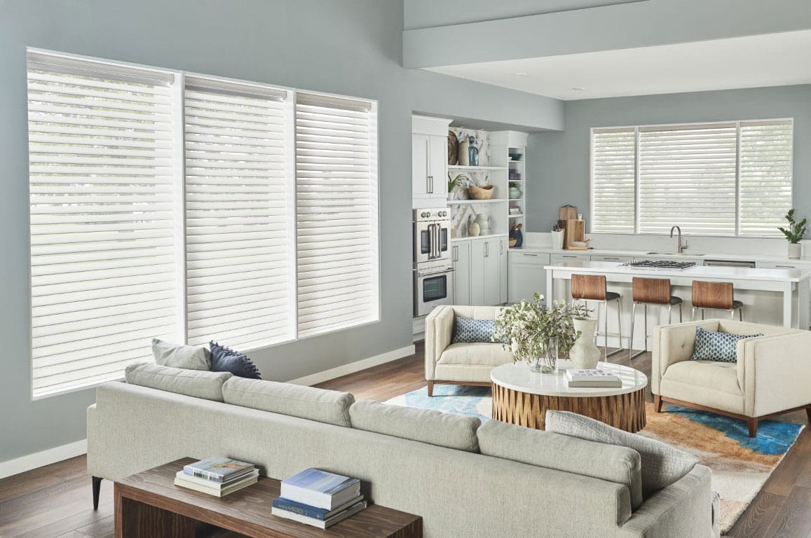 Sheer shades from Delta Shutters have a sleek, modern look that enhances the aesthetic of any room. The combination of fabric and sheer materials adds a touch of elegance, making them a popular choice for living rooms, dining areas, and bedrooms.